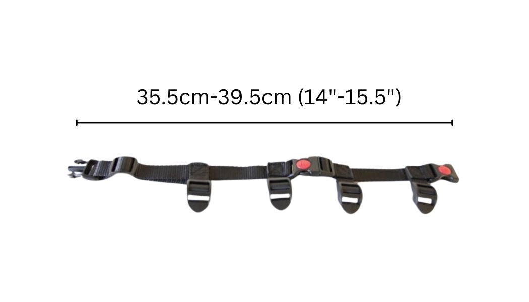 The BuddyRider® collar can be adjusted from 35.5cm-39.4cm (14"-15.5”) in diameter. Be sure to measure your dog's neck to ensure it will fit.