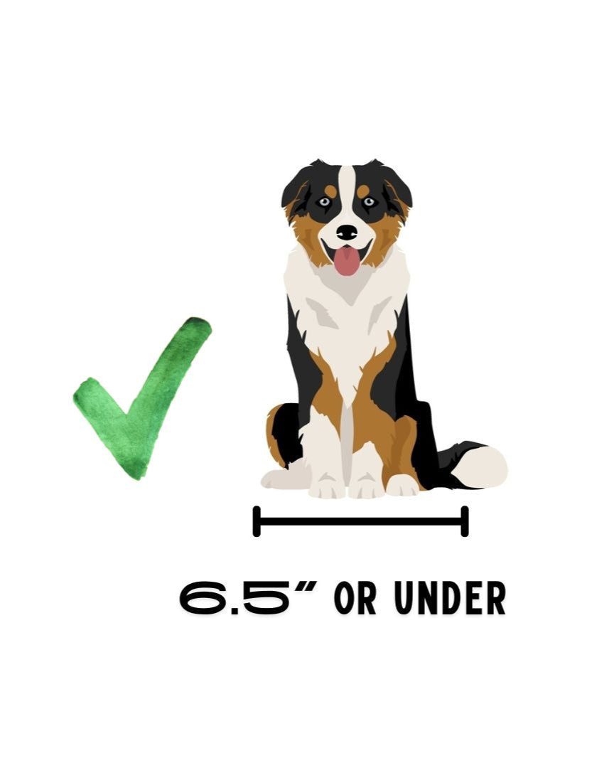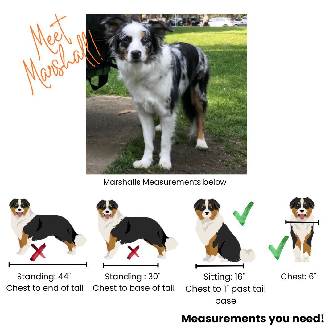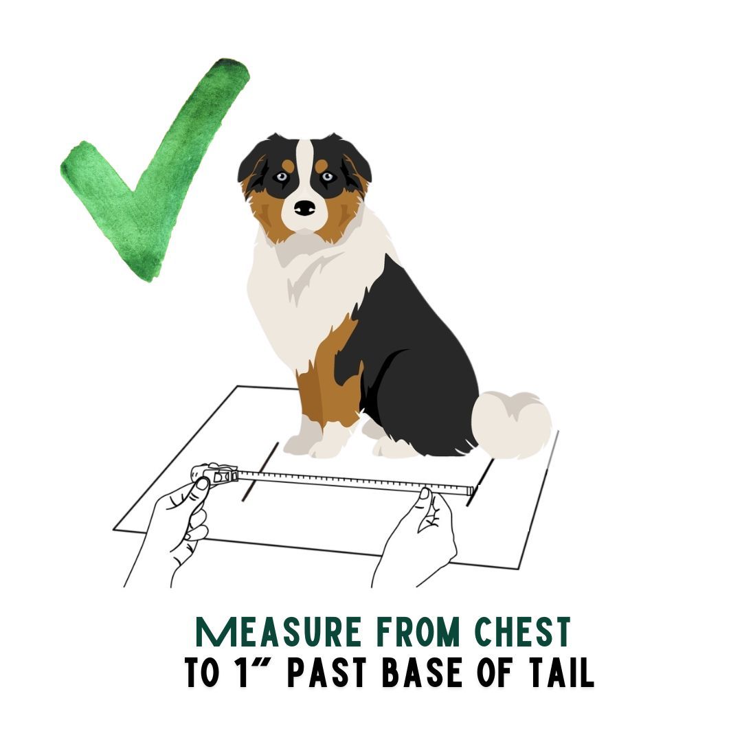 Please look through the photos on the left. We have a visual fitting guide to help ensure your dog will fit!